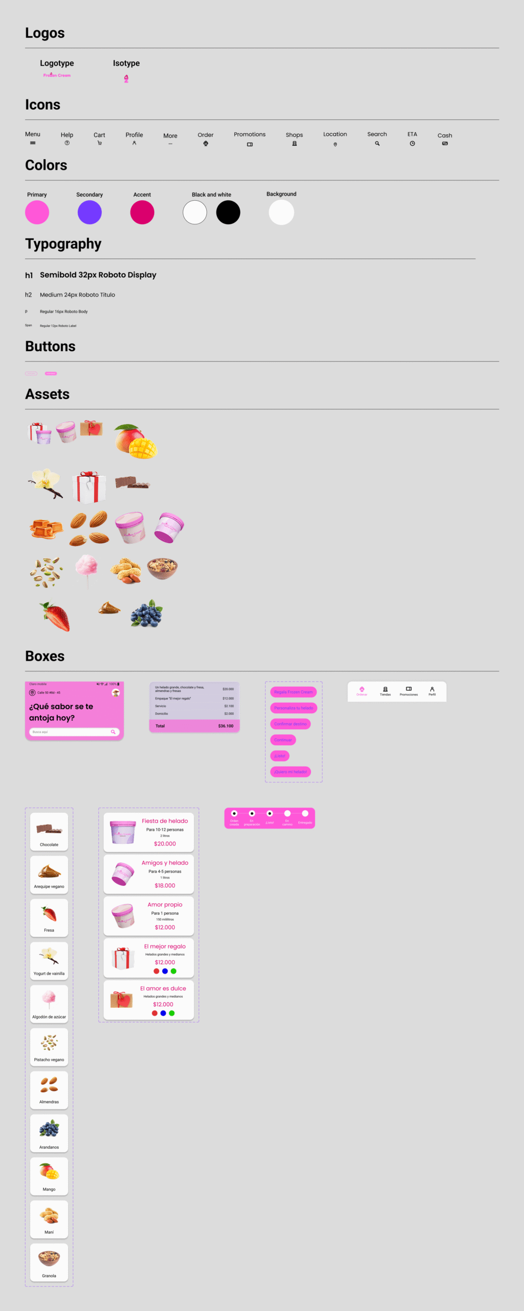 Developed as an independent design exercise, FrozenCream is a concept aimed at elevating the digital experience of ordering and browsing artisanal frozen desserts. The project began with moodboard research and sketching wireframes to explore aesthetics and layout, followed by scalable wireframes of increasing fidelity. The end result was a Figma prototype that simulated ordering flows and visual delight—providing a tangible vision for future usability testing and client presentations. The methodology used in this project was Design Thinking.