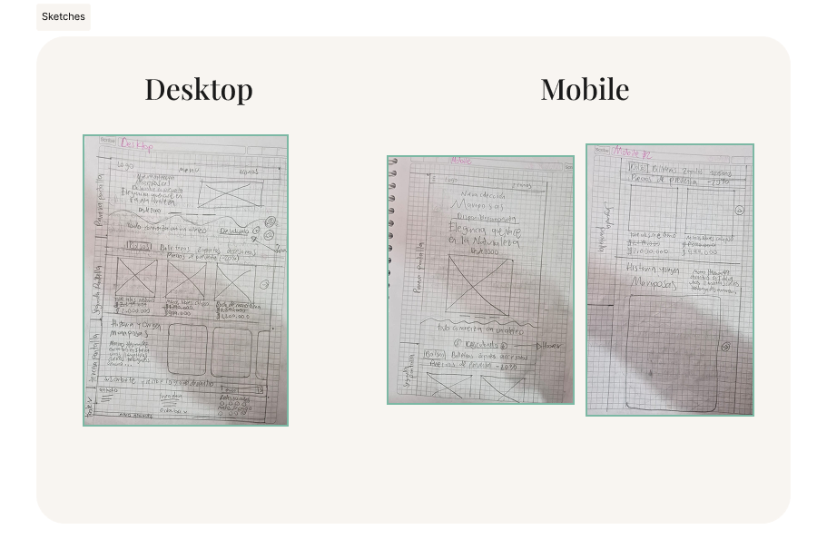 I produced hand-drawn sketches for both web and mobile versions to quickly outline the information architecture and navigation flow. These early drafts facilitated the exploration of solutions, and the prioritization of features.