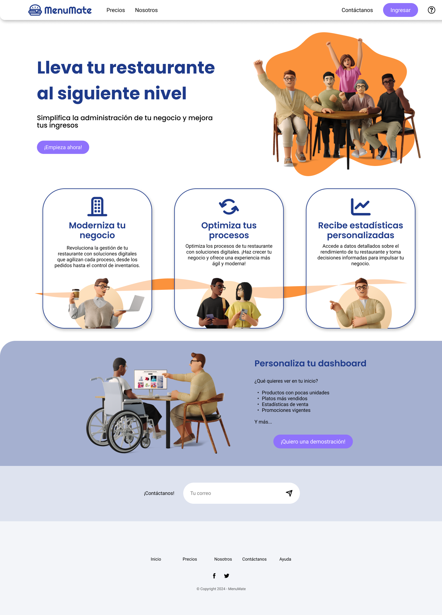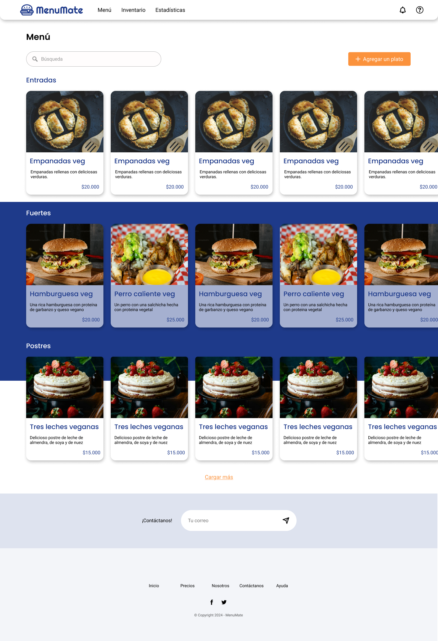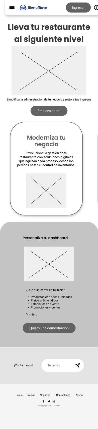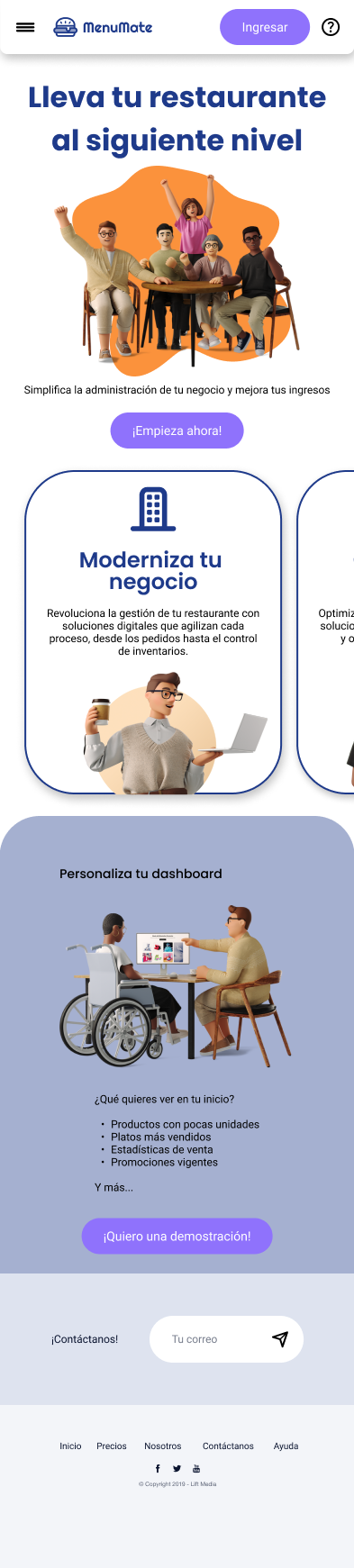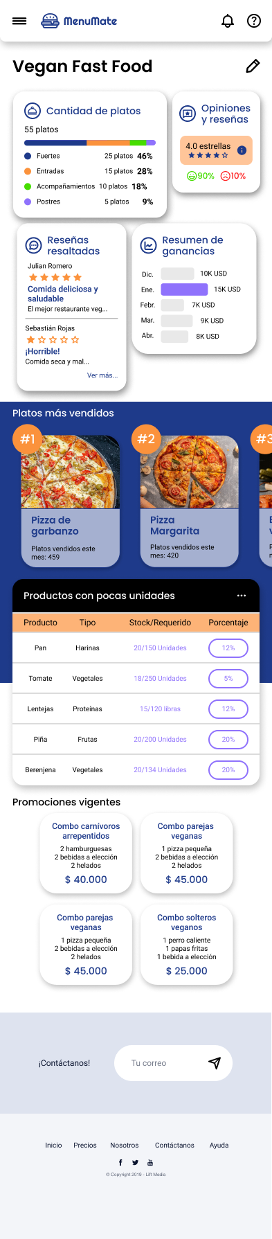Individually, I developed MenuMate, a web platform designed to help restaurant owners manage their menus, track inventory, and access key statistics to support business growth. To achieve this, I applied various UI analysis and design strategies, including the creation of a moodboard, sketches, medium- and high-fidelity wireframes, and an interactive prototype. The Lean UX methodology was used in this project.